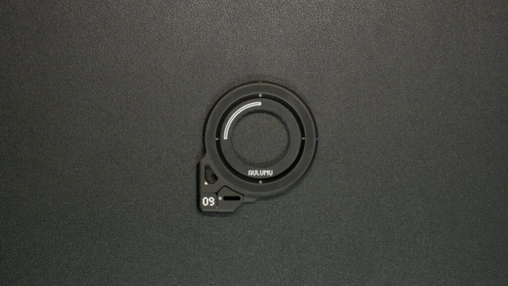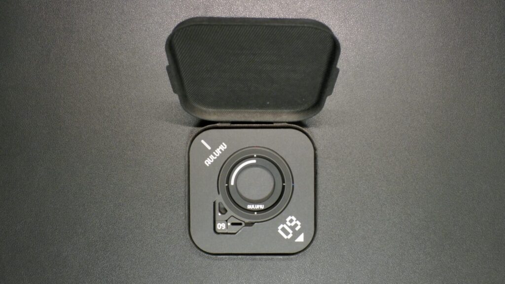 マットブラックの本体に「AULUMU」のブランドロゴや「09」の製品名があしらわれ、主張しすぎない絶妙なバランスに仕上がっています。