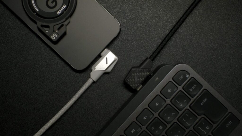 カーボンファイバー素材と高密度編組ナイロンケーブルの組み合わせにより、しなやかで取り回しやすい仕上がりになっています。
