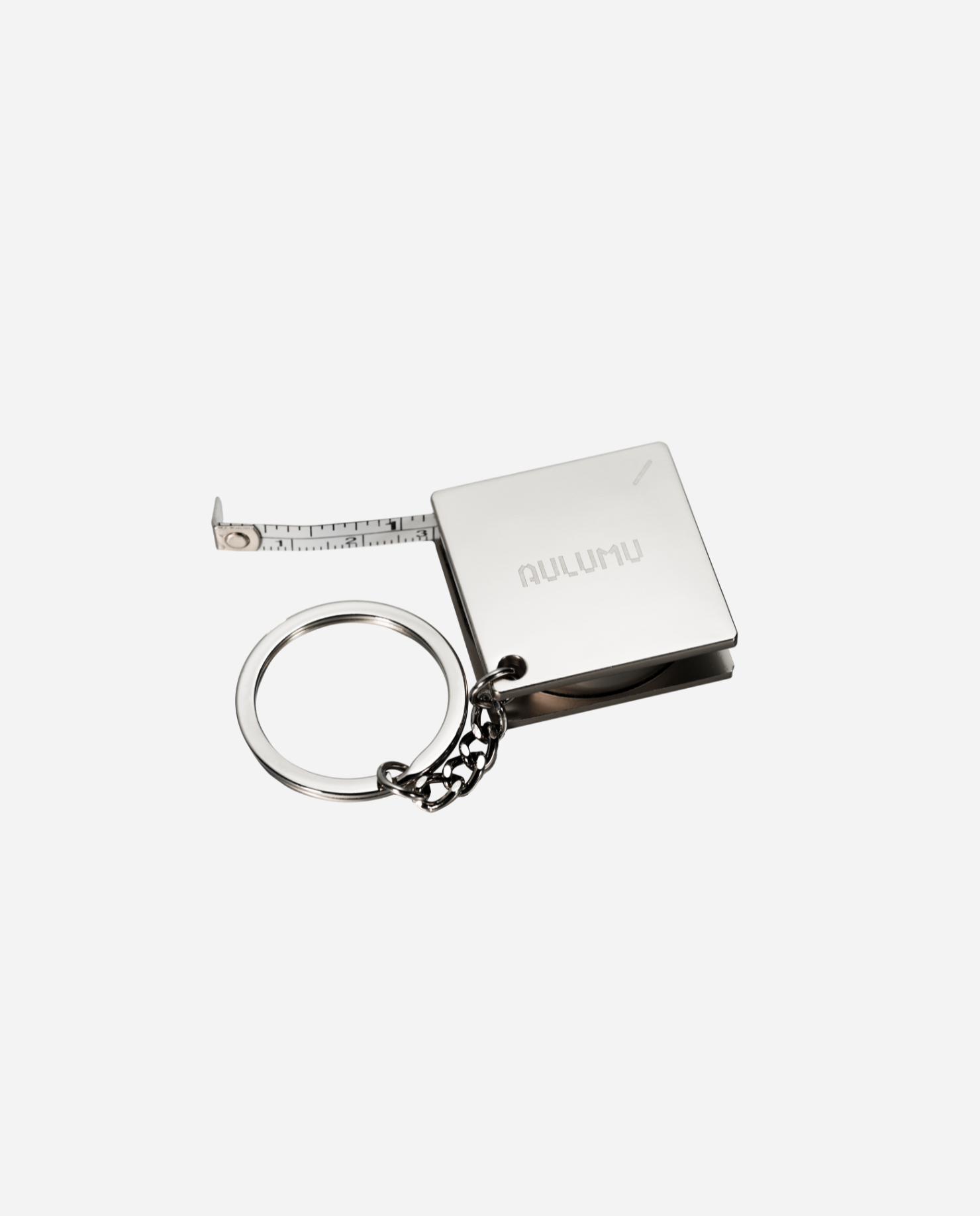 シルバーの本体に控えめなロゴがあしらわれ、従来のメジャーが持つ「工具感」を完全に払拭した、アクセサリーのような仕上がりです。