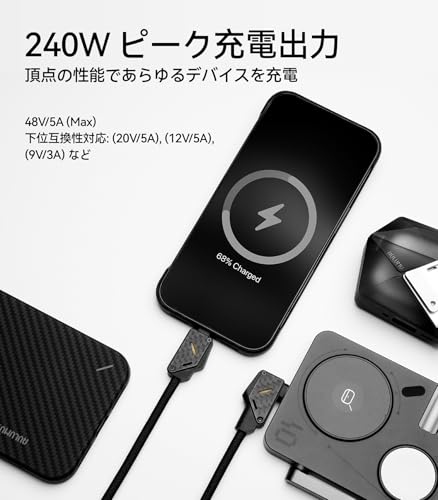 私の環境では正直オーバースペックですが、240Wという超高速充電に対応している点は大きな魅力です。