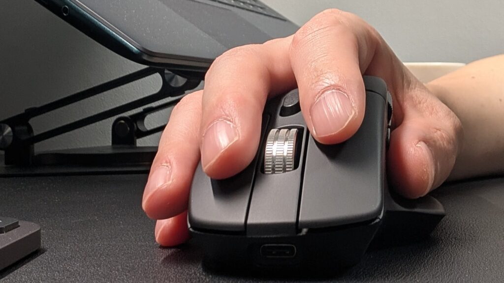 最近のゲーミングマウスのように超軽量とまではいきませんが、MX Master 4(150g)のほぼ半分の86gと程よい重さです。