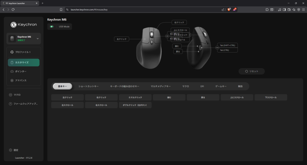 Keychron Launcherを利用すれば、専用ソフトをインストールしなくてもブラウザ上でM6のカスタマイズが可能です。