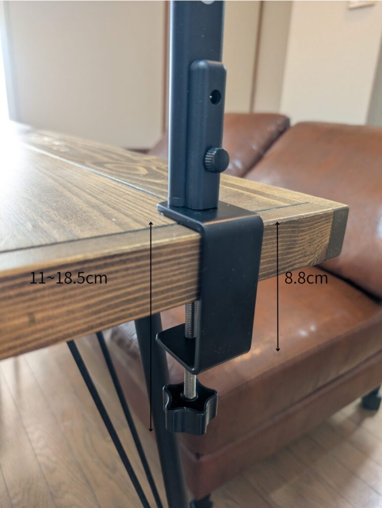 少なくとも11cm+デスクの厚み分のスペースが必要なため、購入前に設置予定のスペースを確認することをおすすめします。